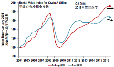 | Rents stable in Pudong CBD, down in Puxi CBD 浦东中央商务区租金保持平稳,浦西略有下跌 |