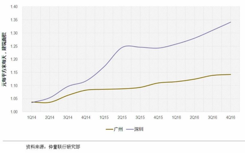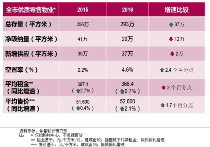 | 2016年广州市社会消费品零售总额的整体增速仍然缓慢,很多零售商本年度的销售业绩也相应平淡,导致零售业整体租赁需求依旧疲软。 |